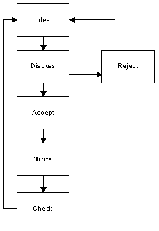 In Class C students were expected to use the heuristic while working in small groups of four on a common task. Before beginning the task the students were taught how the diagram showed the general nature of solving a problem. The teacher explained that in discussing the problem early ideas of how the problem could be solved would arise. These ideas would be discussed further by the group and be either accepted or rejected as part of the solution to the problem. If the idea being discussed was accepted as being part of the solution, it was recorded (generally on paper) then checked for group agreement that it was still part of the solution. A review of the heuristic was conducted briefly at the start of each lesson prior to students setting to work on the mathematical tasks.